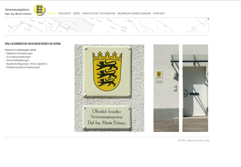 Im Auftrag des Vermessungsbüro Dehmer, entwarf ich ein Layout für die Internetpräsenz und setzte es dann um.
